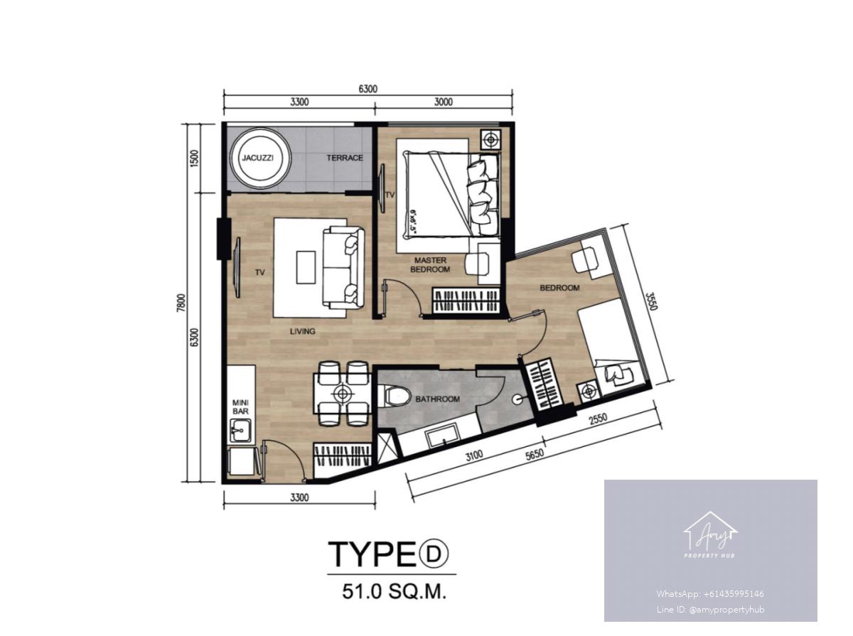 พื้นที่ : 51.00 ตร.ม.