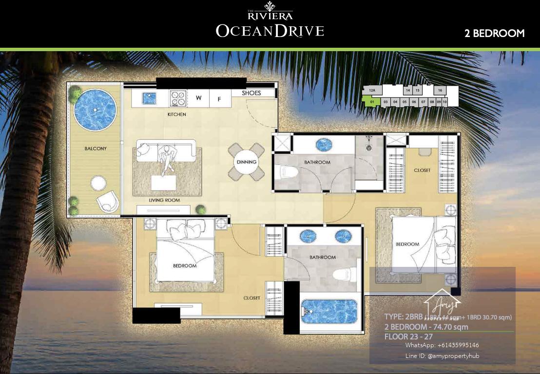 📌 ห้อง 2-Bedroom Units | 66 – 85 ตร.ม. (The Riviera Jomtien)