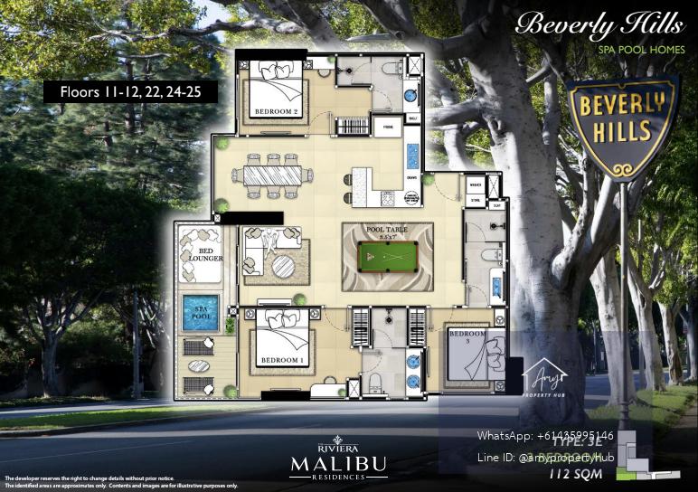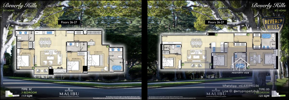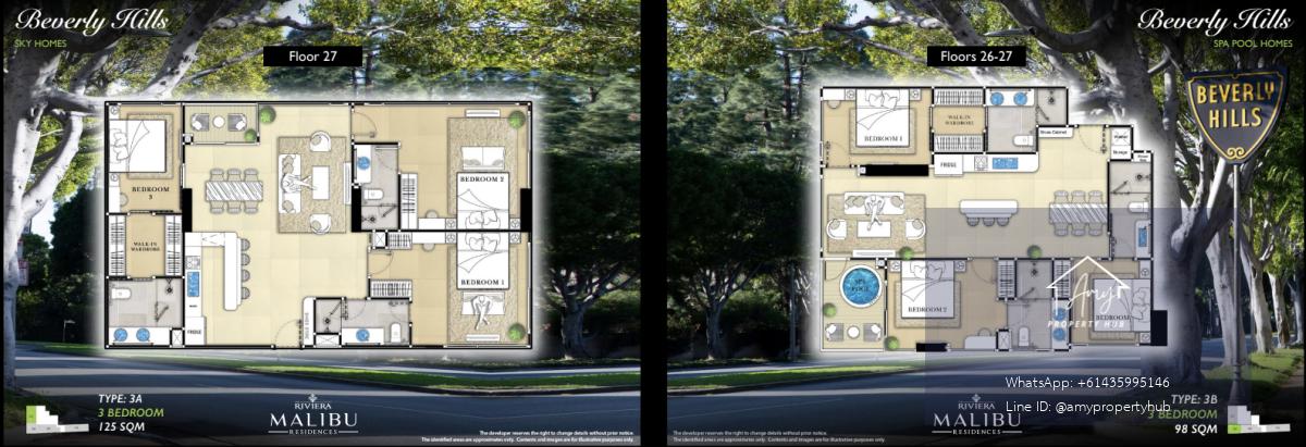 📌 ห้อง 3-Bedrooms Units | 98 – 133 ตร.ม. (The Riviera Malibu Residences)
