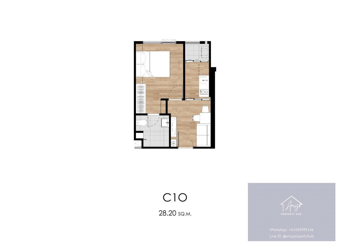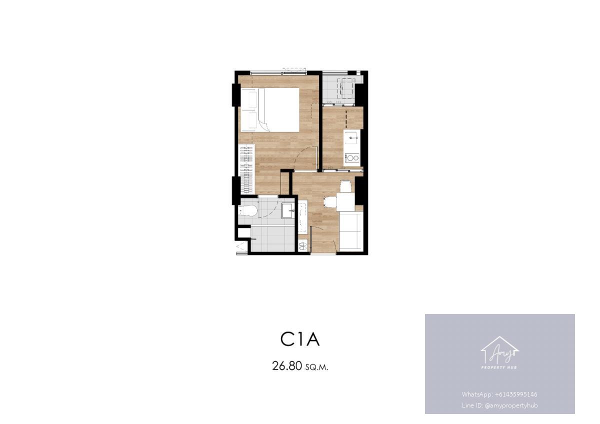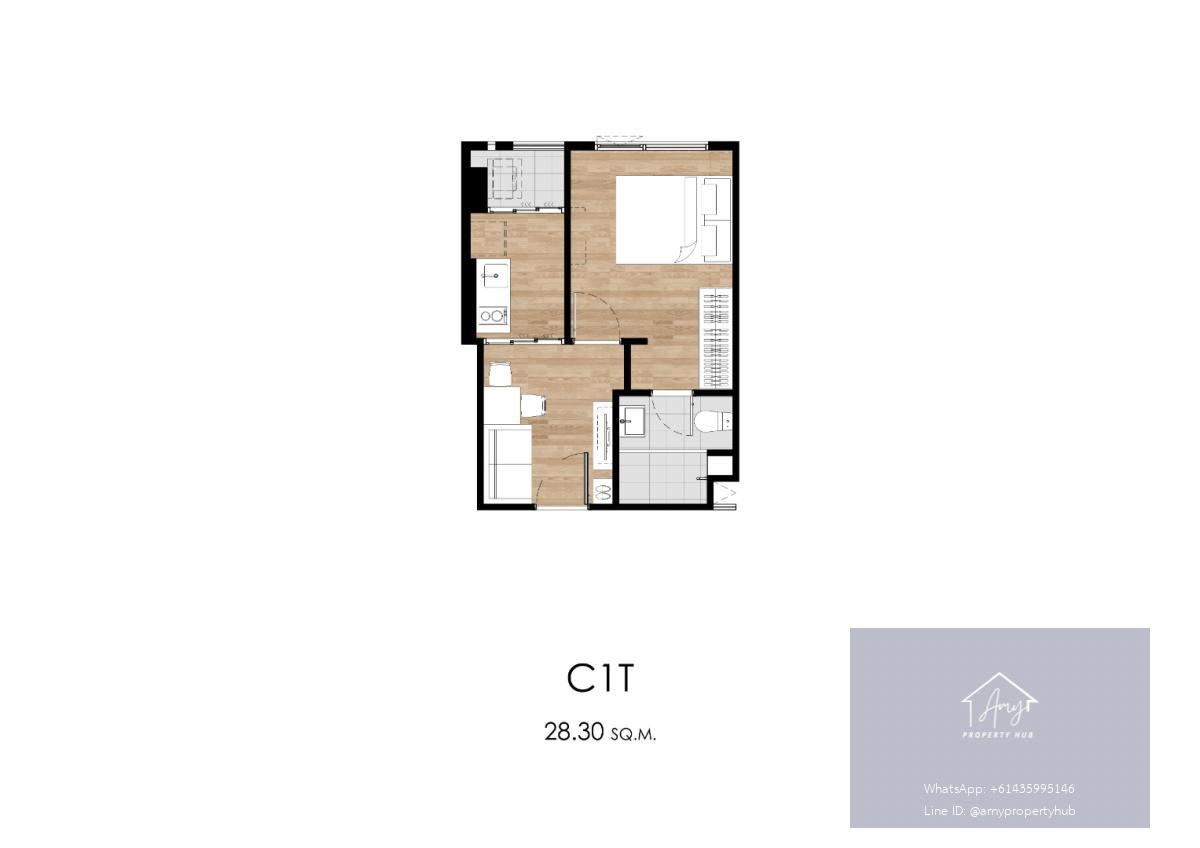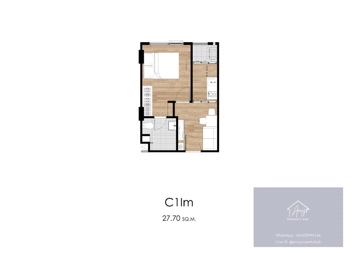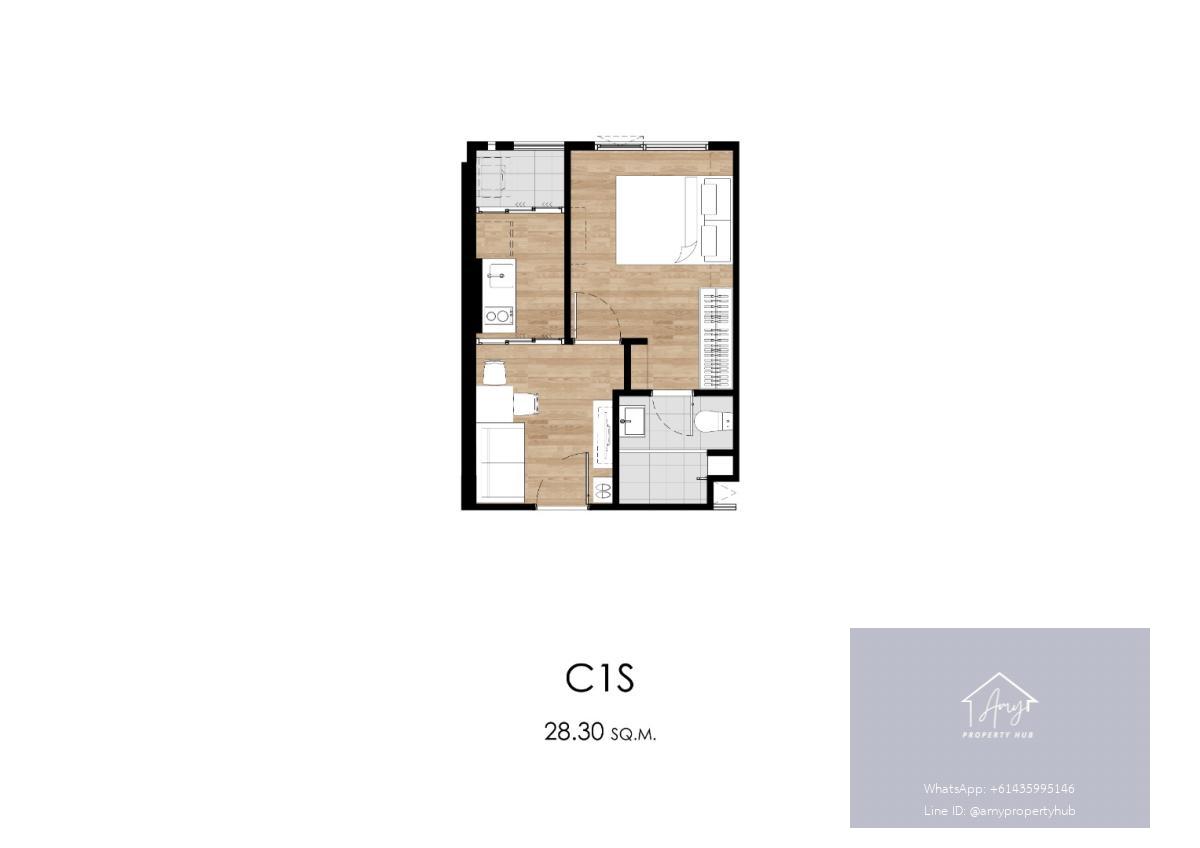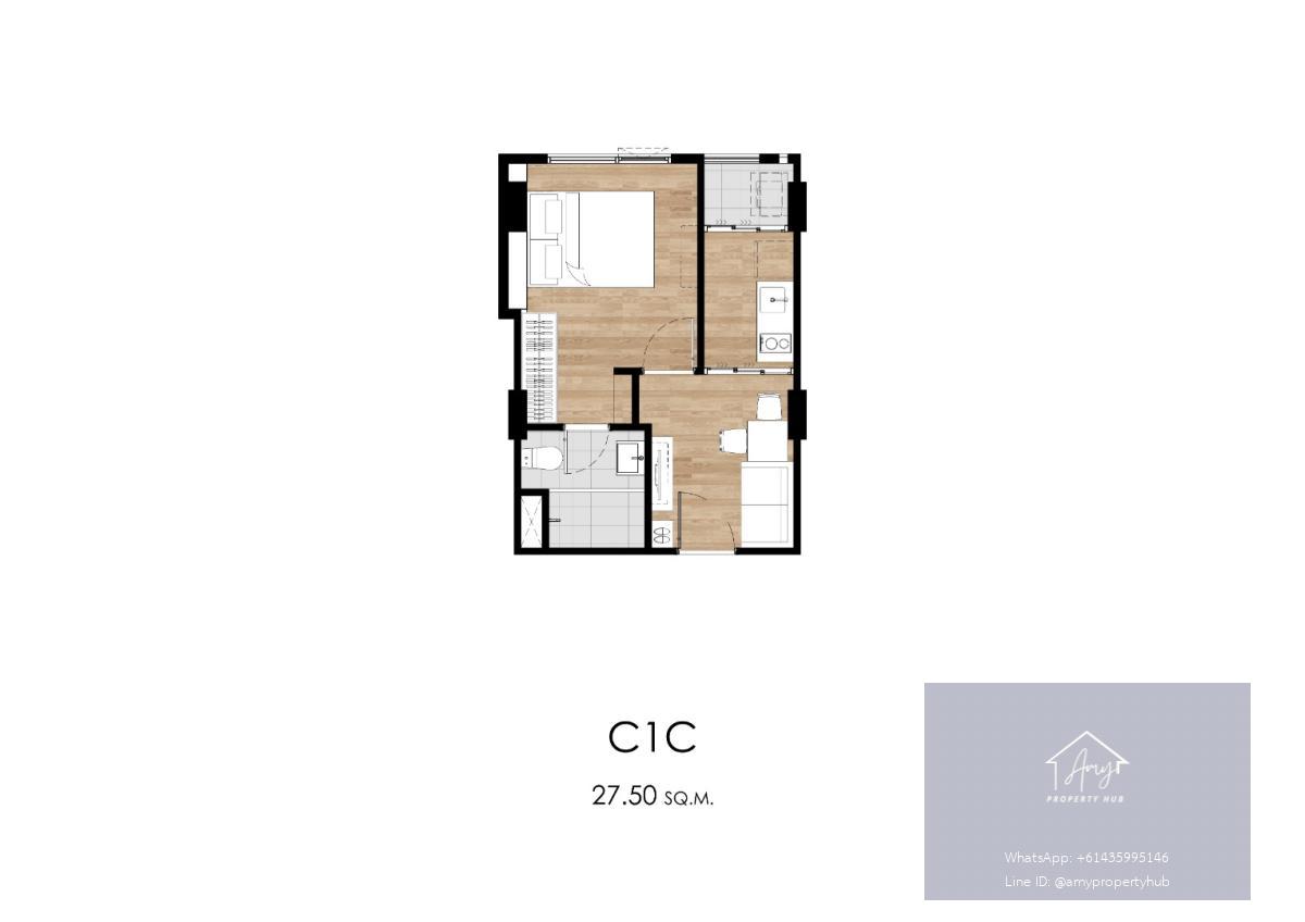 พื้นที่ใช้สอย: 26.80 ตร.ม. – 28.50 ตร.ม.