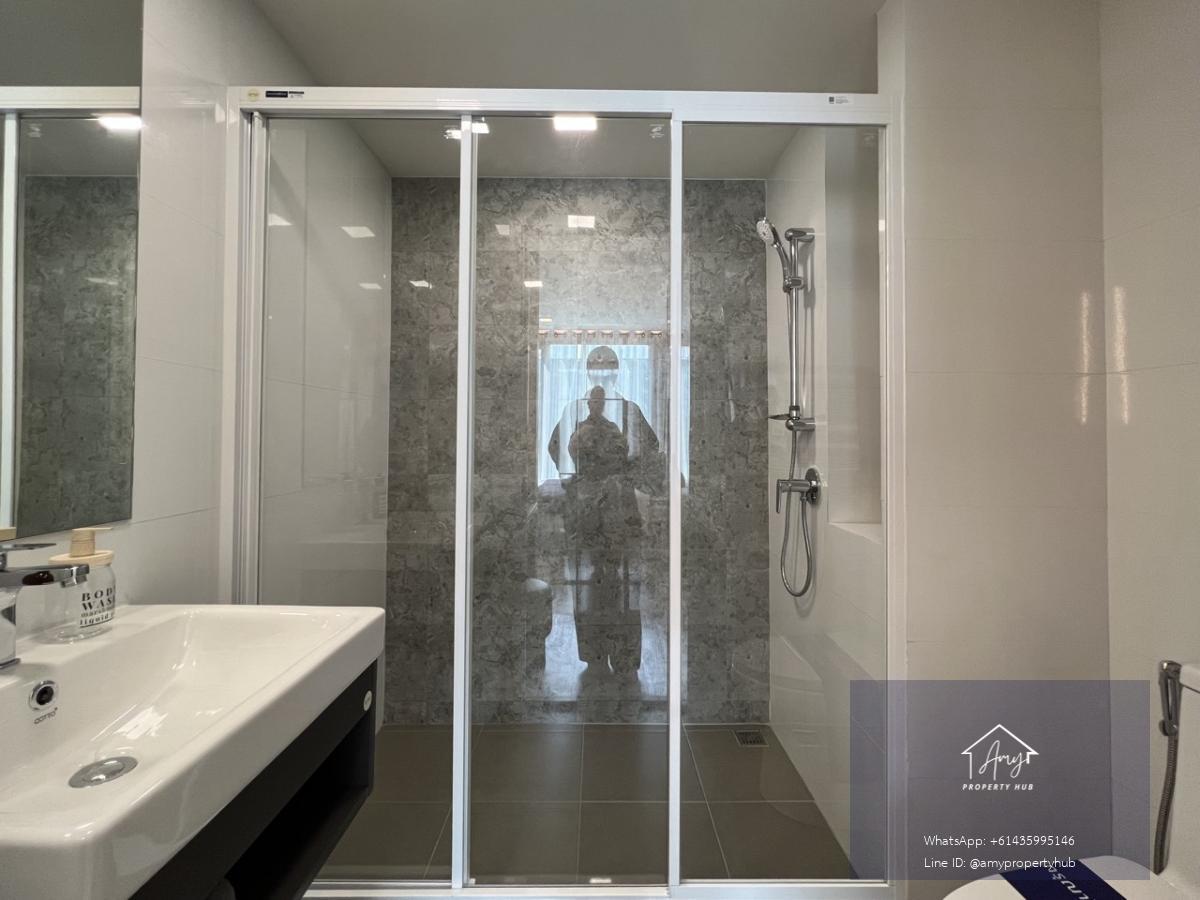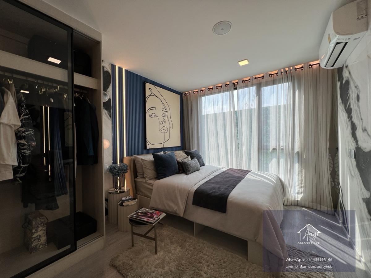พื้นที่พิเศษ (Extra Space): มีพื้นที่บริเวณทางเข้าหรือมุมห้องนั่งเล่นที่กว้างกว่าปกติ ซึ่งสามารถใช้จัดเป็น มุมทำงาน (Study Corner), โต๊ะเครื่องแป้ง, หรือพื้นที่สำหรับ Walk-in Closet ขนาดกะทัดรัด