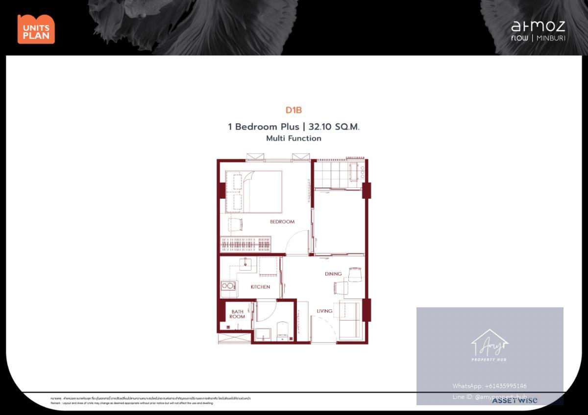 📌 ห้อง 1 Bedroom Plus Units | ประมาณ 32 ตร.ม. (Atmoz Flow Minburi)