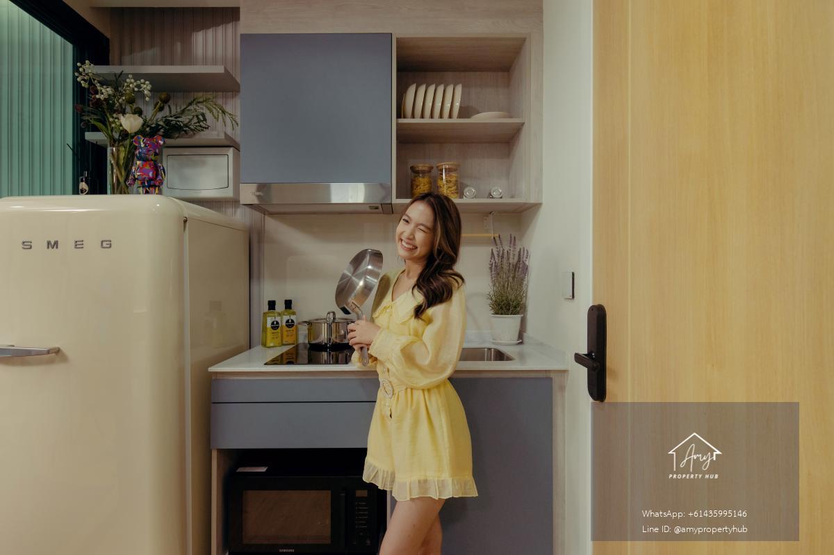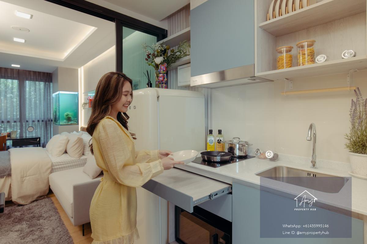 ห้องครัว: มีเคาน์เตอร์ครัว Built-in พร้อมอ่างล้างจาน เตาไฟฟ้า และเครื่องดูดควัน (โดยทั่วไปจะเป็นครัวเปิด)
