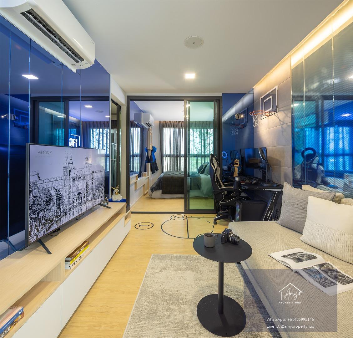 ห้องชุด 1 Bedroom Exclusive ในโครงการ Atmoz Kanaal Rangsit (แอทโมซ คาแนล รังสิต) เป็นยูนิตขนาดกลางที่มีพื้นที่ใช้สอยมากขึ้นอย่างเห็นได้ชัดเมื่อเทียบกับห้องเริ่มต้น (23 ตร.ม.) ทำให้ผังห้องมีความยืดหยุ่นในการจัดวางเฟอร์นิเจอร์ และรู้สึกโปร่งโล่งสบายกว่า