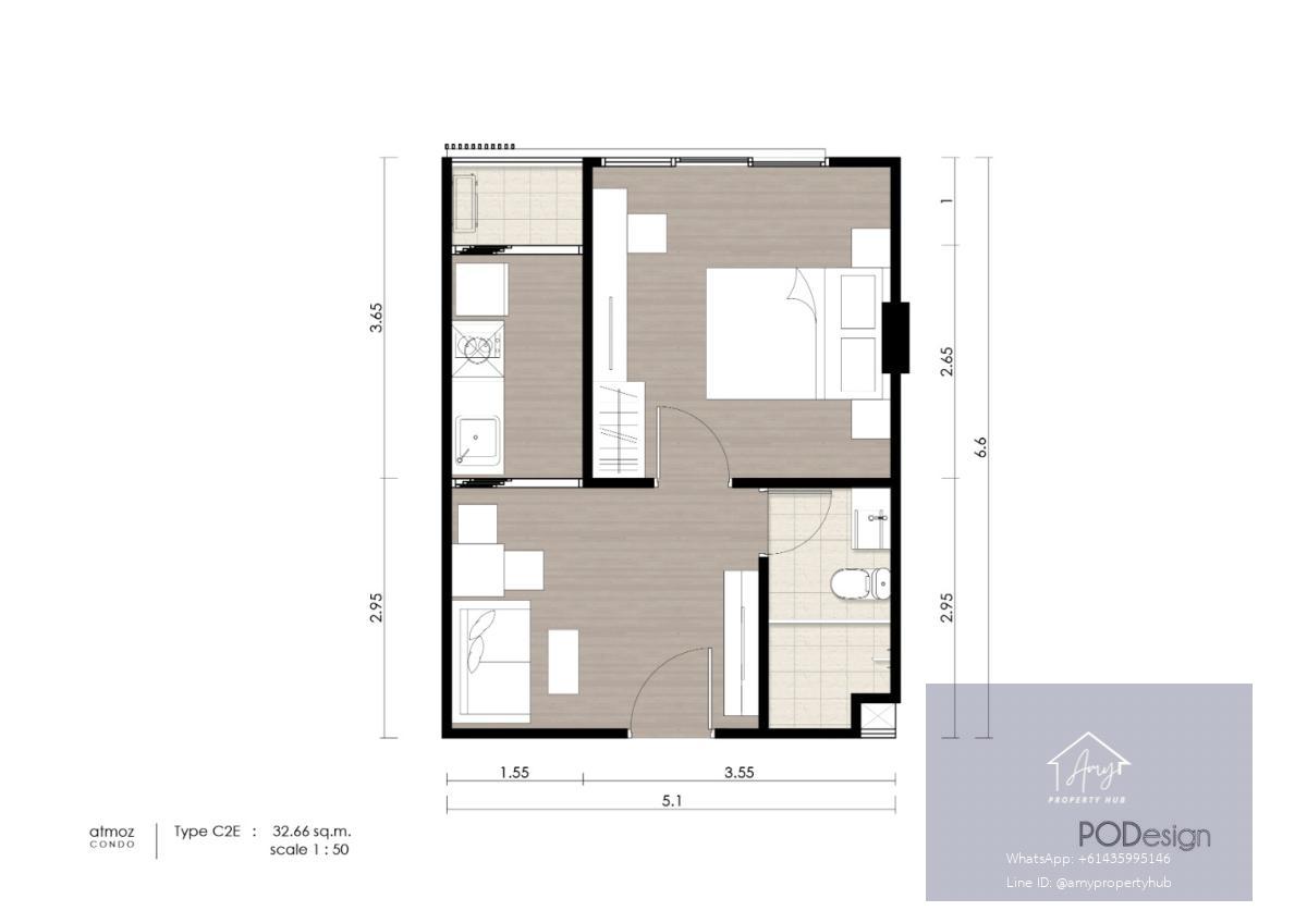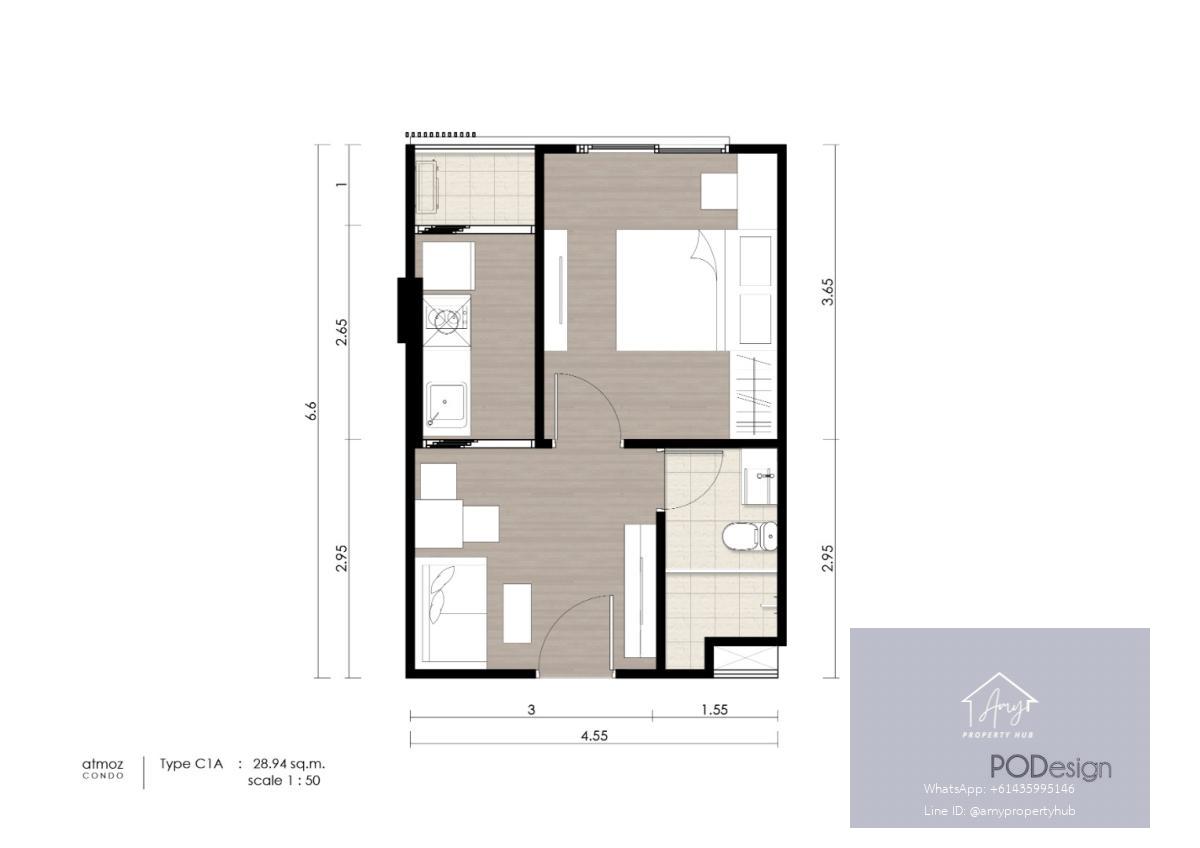 📌 ห้อง 1 Bedroom Exclusive Units | 28.94 – 41.59 ตร.ม. (Atmoz Ladprao 71)