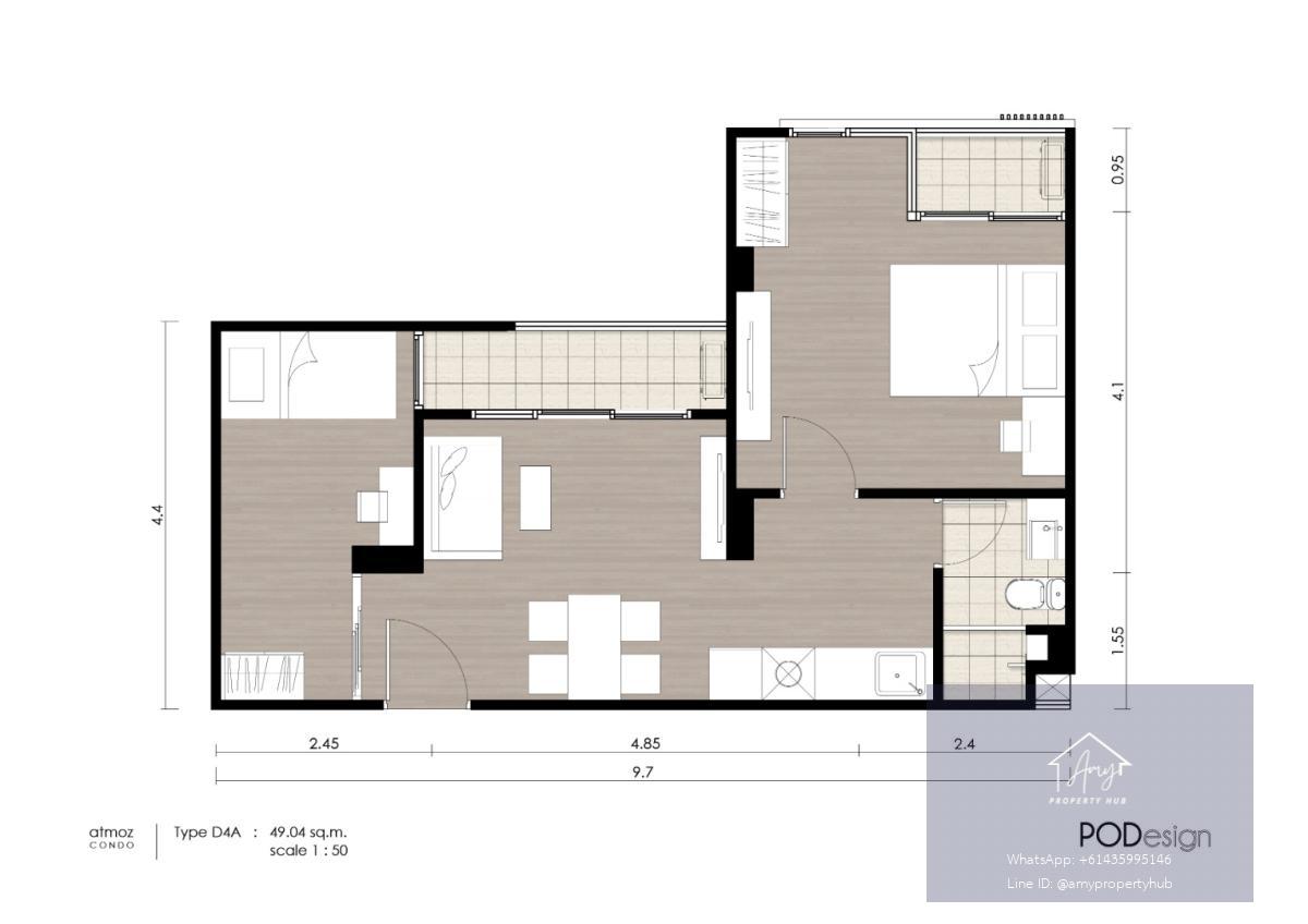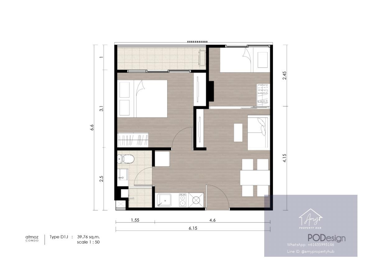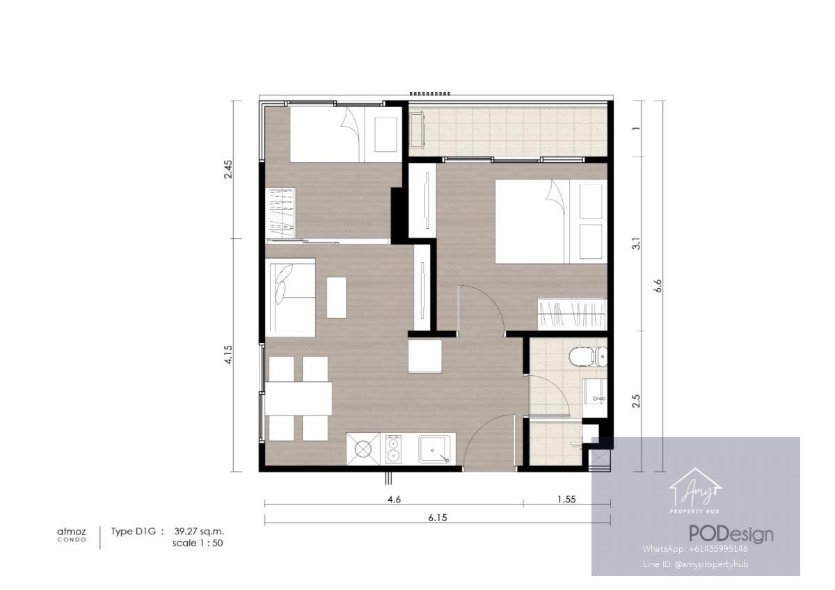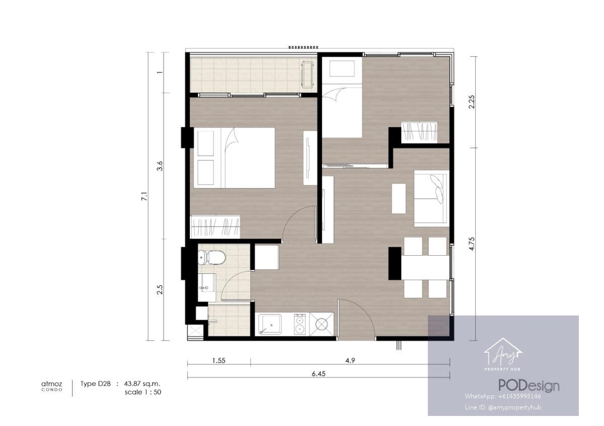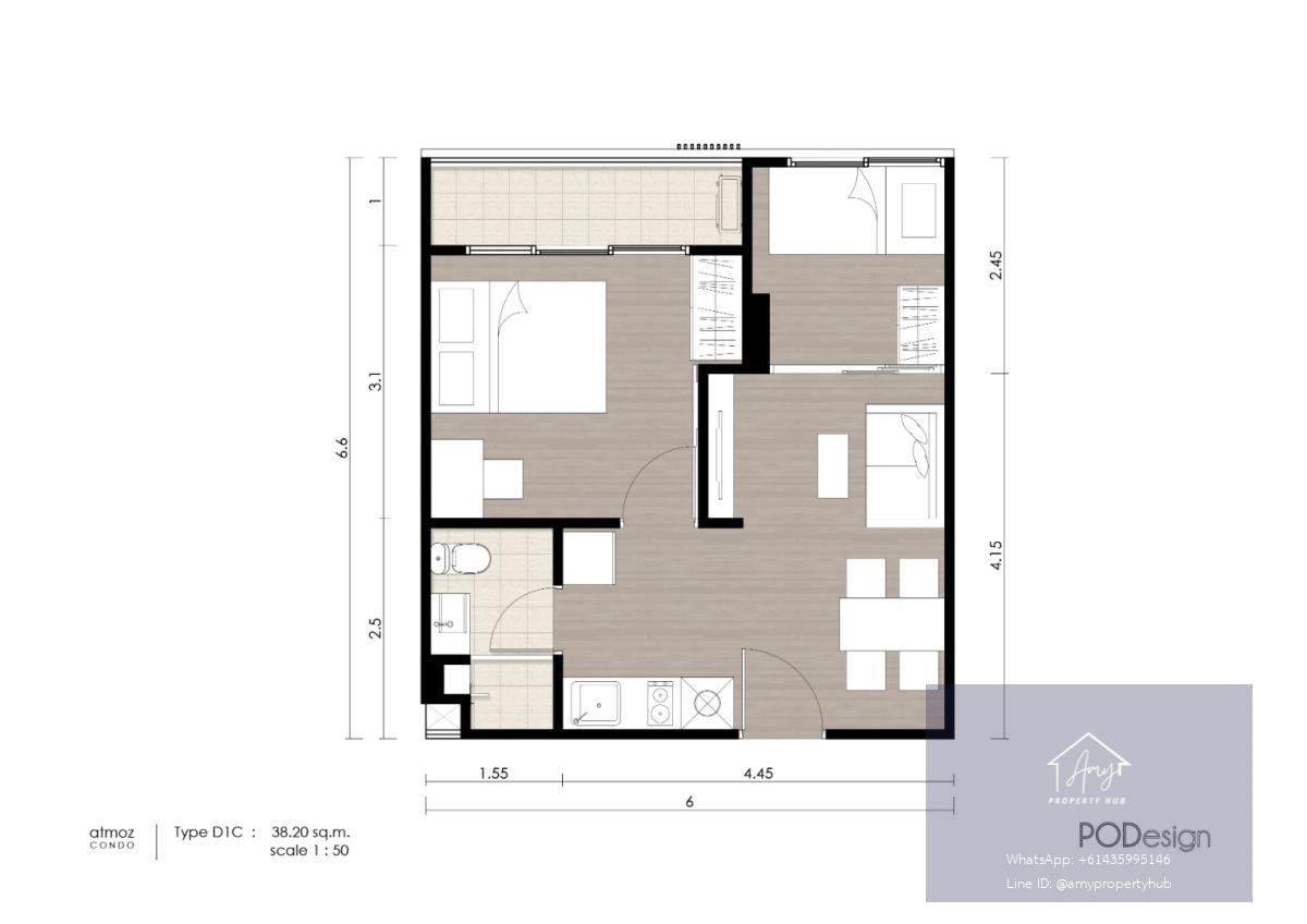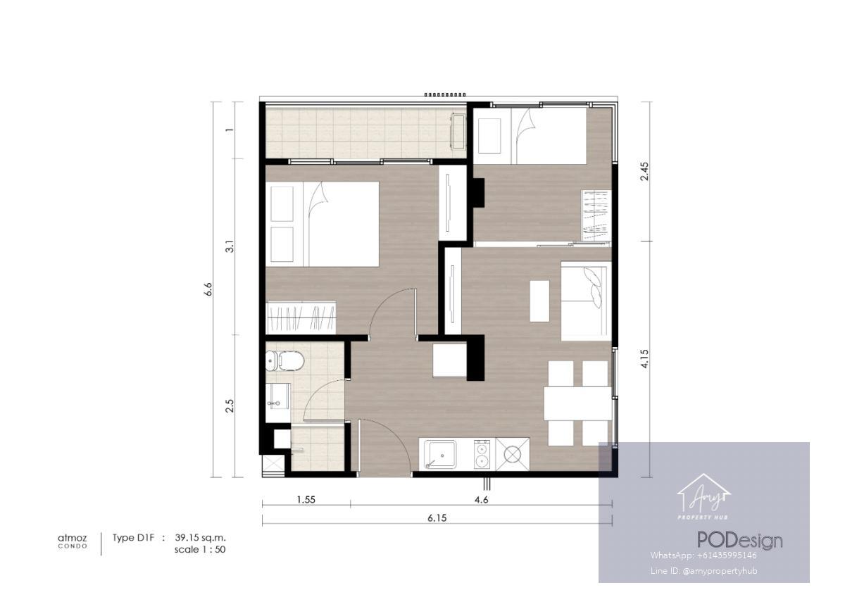 📌 ห้อง 1 Bedroom Plus Units | 38.06 – 51.90 ตร.ม. (Atmoz Ladprao 71)
