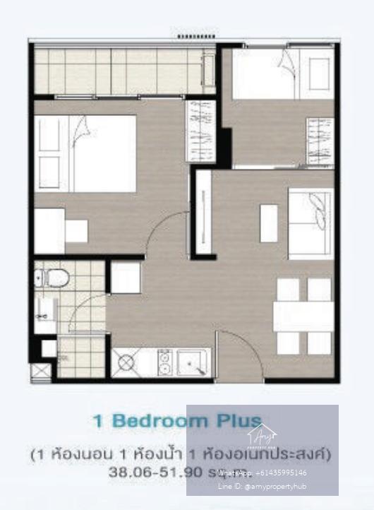 1 Bedroom Plus 38.06 – 51.90 ตร.ม. 1 ห้องนอน, 1 ห้องน้ำ, 1 ห้องอเนกประสงค์