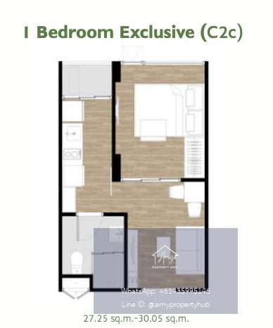 1 Bedroom Exclusive 27.00 – 30.05 ตร.ม. 1 ห้องนอน, 1 ห้องน้ำ (ห้องขนาดกลาง)