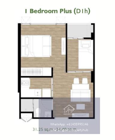 1 Bedroom Plus 32.80 – 34.35 ตร.ม. 1 ห้องนอน, 1 ห้องน้ำ, 1 ห้องอเนกประสงค์