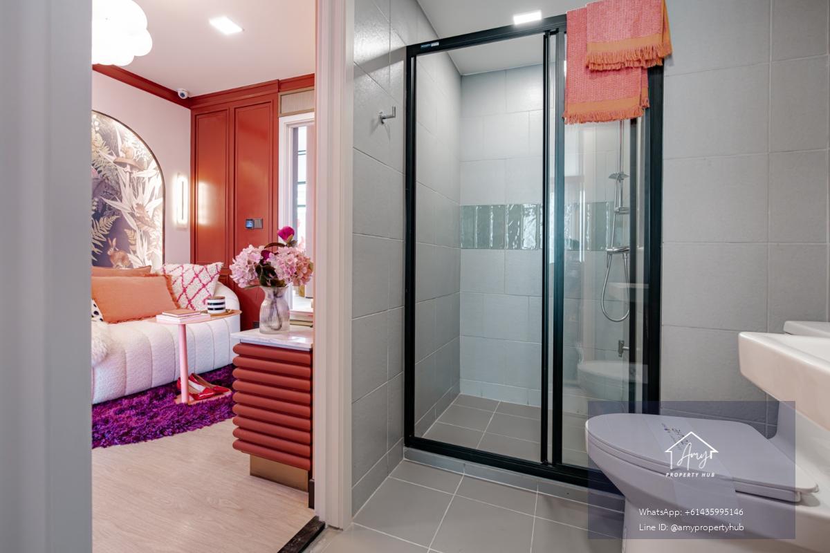 พื้นที่ใช้สอย: 26.30 ตร.ม. – 27.80 ตร.ม. (ห้องขนาดกลาง)