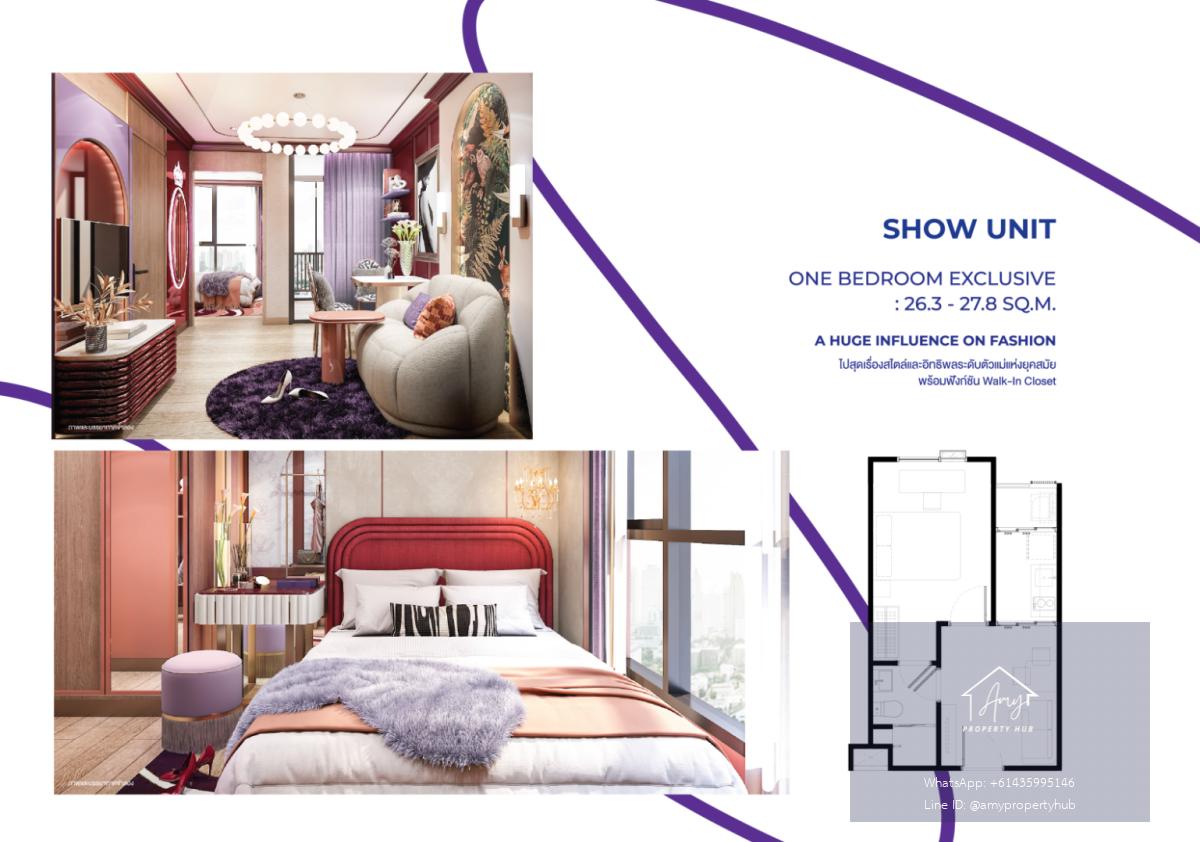 1 Bedroom Exclusive 26.30 – 27.80 ตร.ม. 1 ห้องนอน, 1 ห้องน้ำ (ห้องขนาดกลาง)