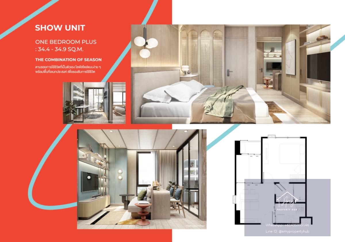 📌 ห้อง 1 Bedroom Plus Units | 34.40 – 34.90 ตร.ม. (Atmoz Season Ladkrabang)