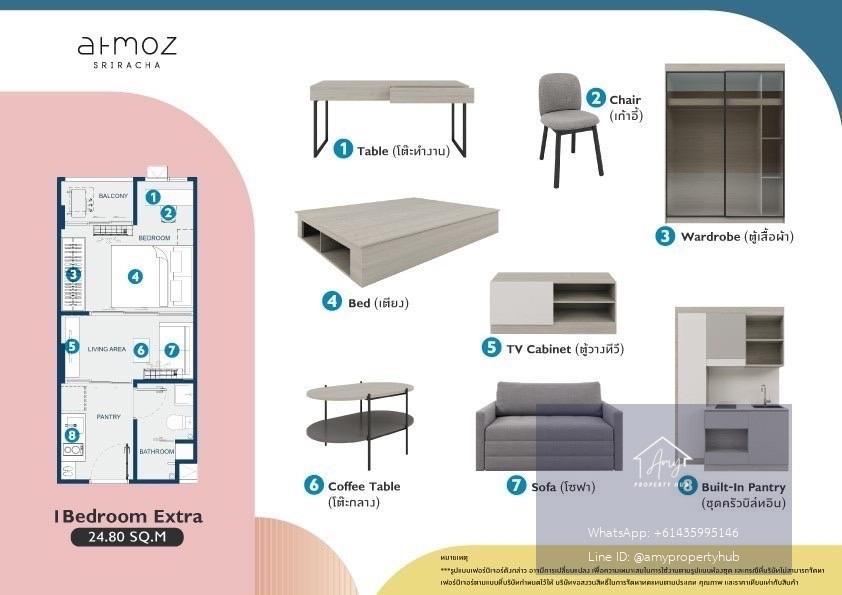 📌 ห้อง 1 Bedroom Extra Units | 24.00 – 25.00 ตร.ม. (Atmoz Serene Sriracha)