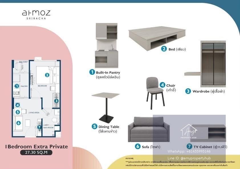 📌 ห้อง 1 Bedroom (Standard) Units | 22.00 – 23.00 ตร.ม. (Atmoz Serene Sriracha)