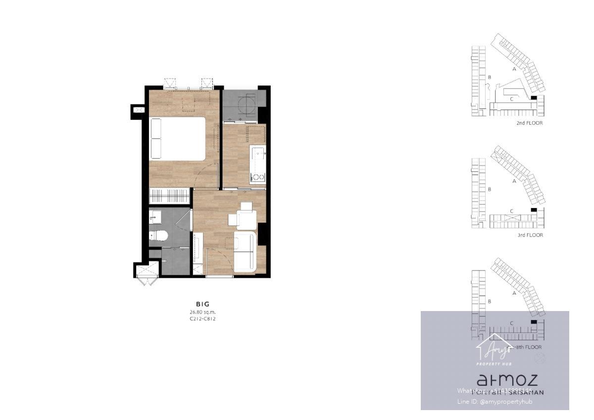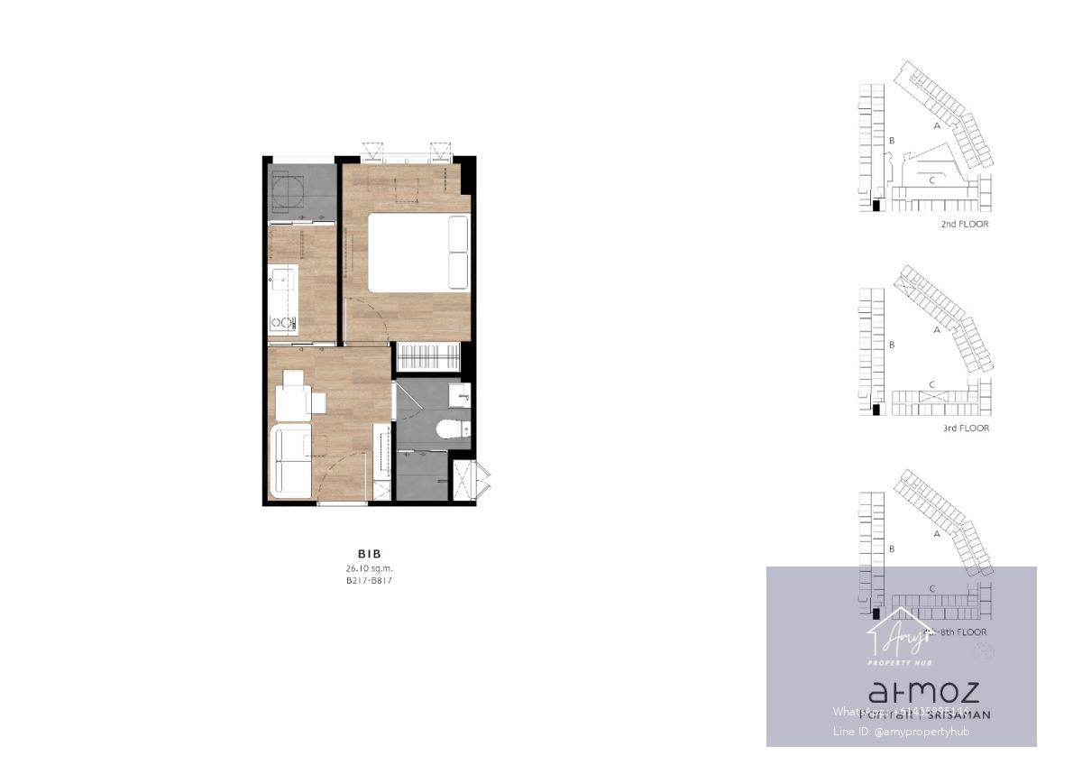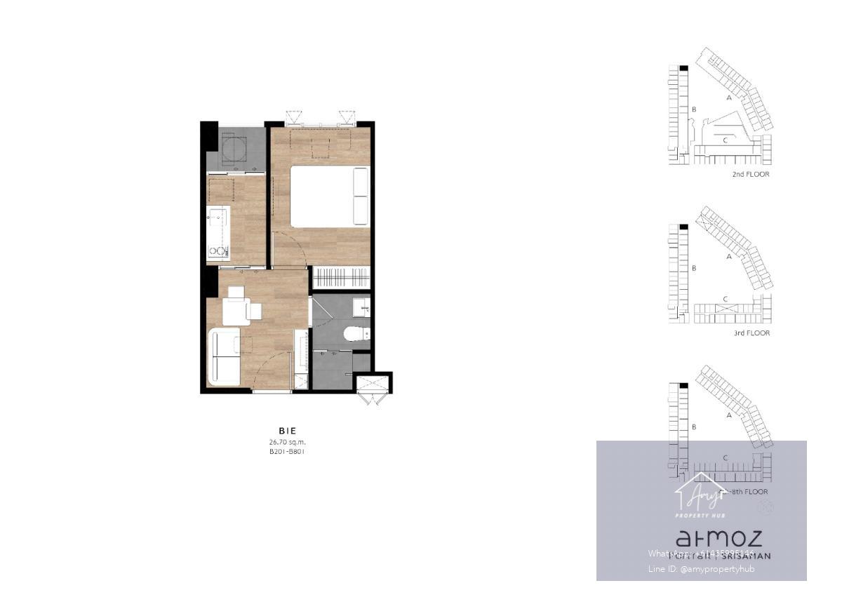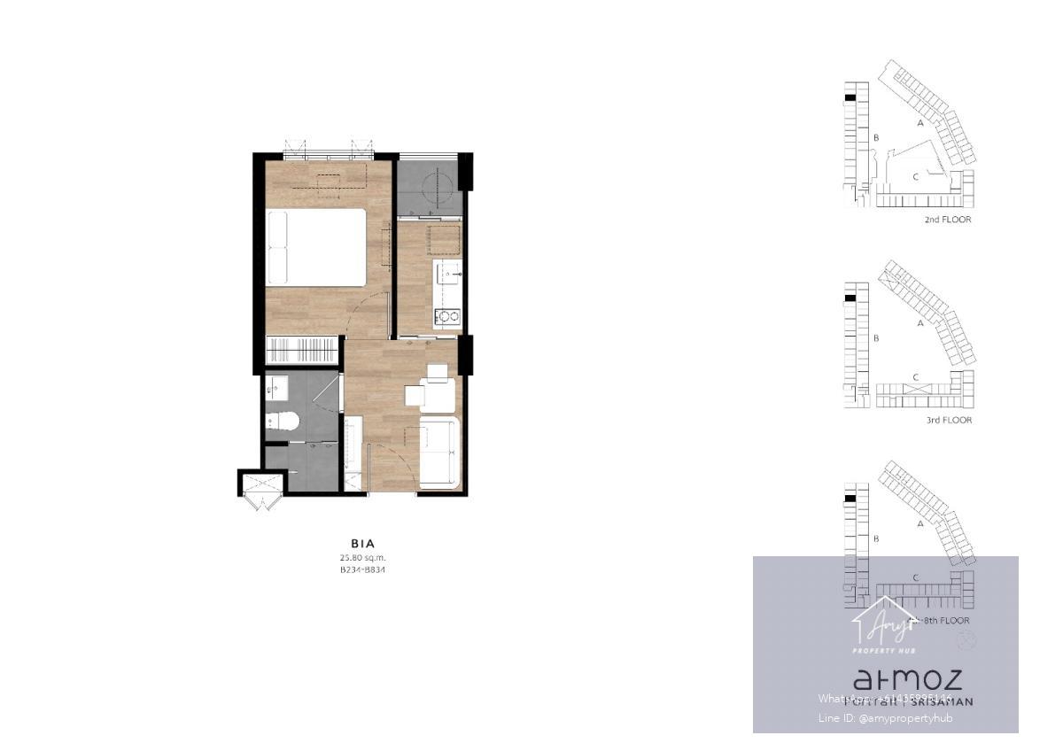 พื้นที่ใช้สอย: 25.80 ตร.ม. – 27.20 ตร.ม.
