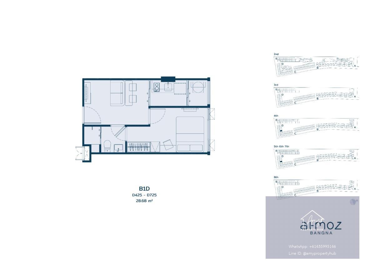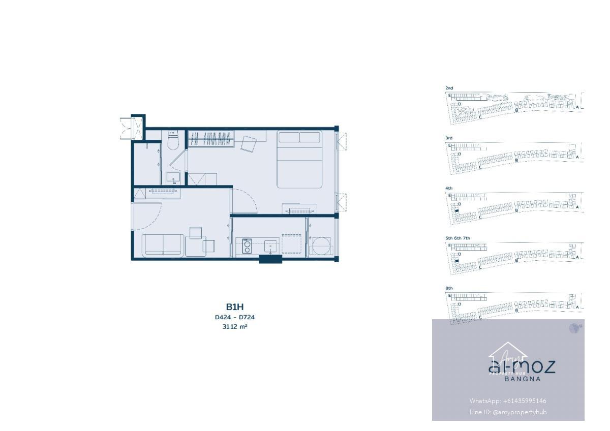 พื้นที่ใช้สอย: 27.93 ตร.ม. – 34.29 ตร.ม.