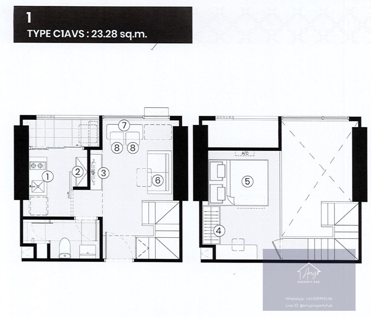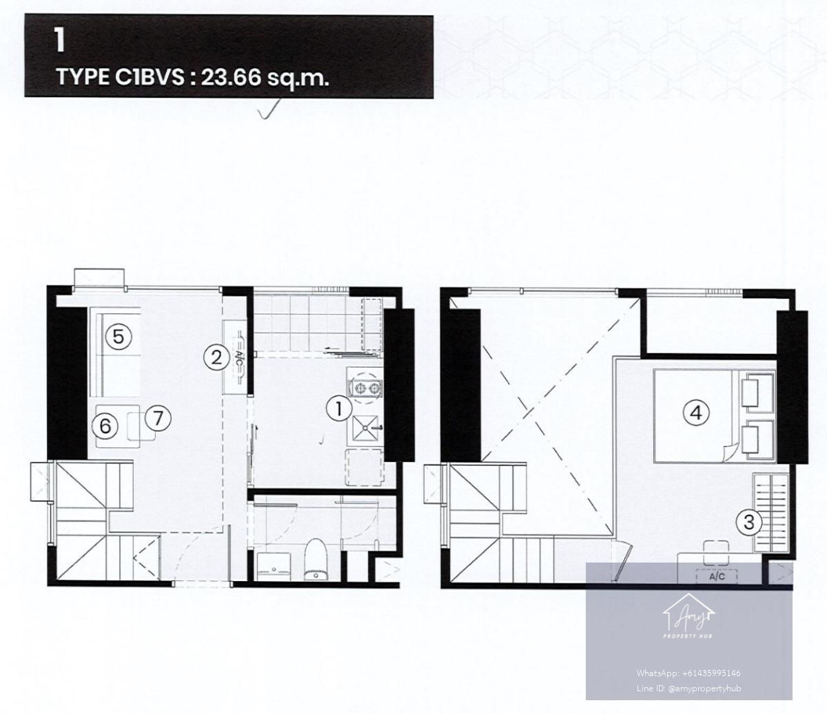 พื้นที่ใช้สอย: 23.28 – 42.71 ตร.ม. (ขนาดพื้นที่รวมพื้นที่ชั้นล่างและชั้นลอย)