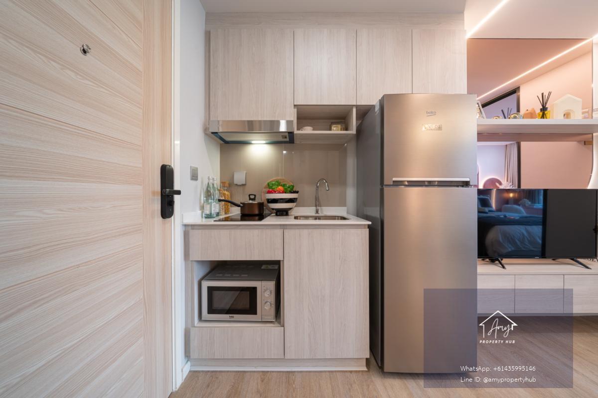 ครัว Pantry: มีครัวขนาดกะทัดรัดติดทางเข้า พร้อมเตาไฟฟ้า เครื่องดูดควัน และซิงค์ล้างจาน
