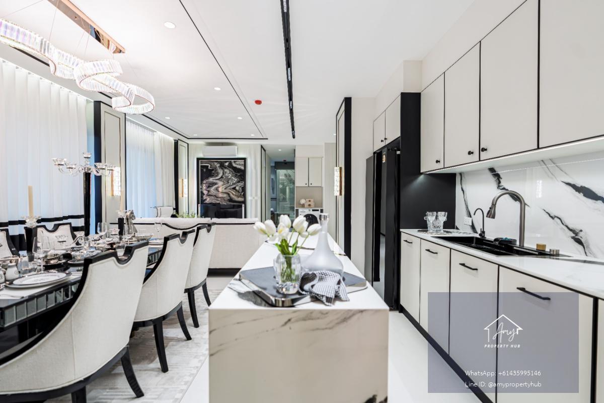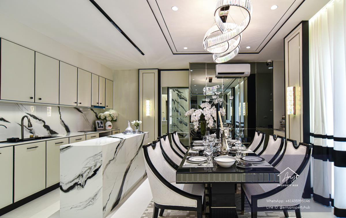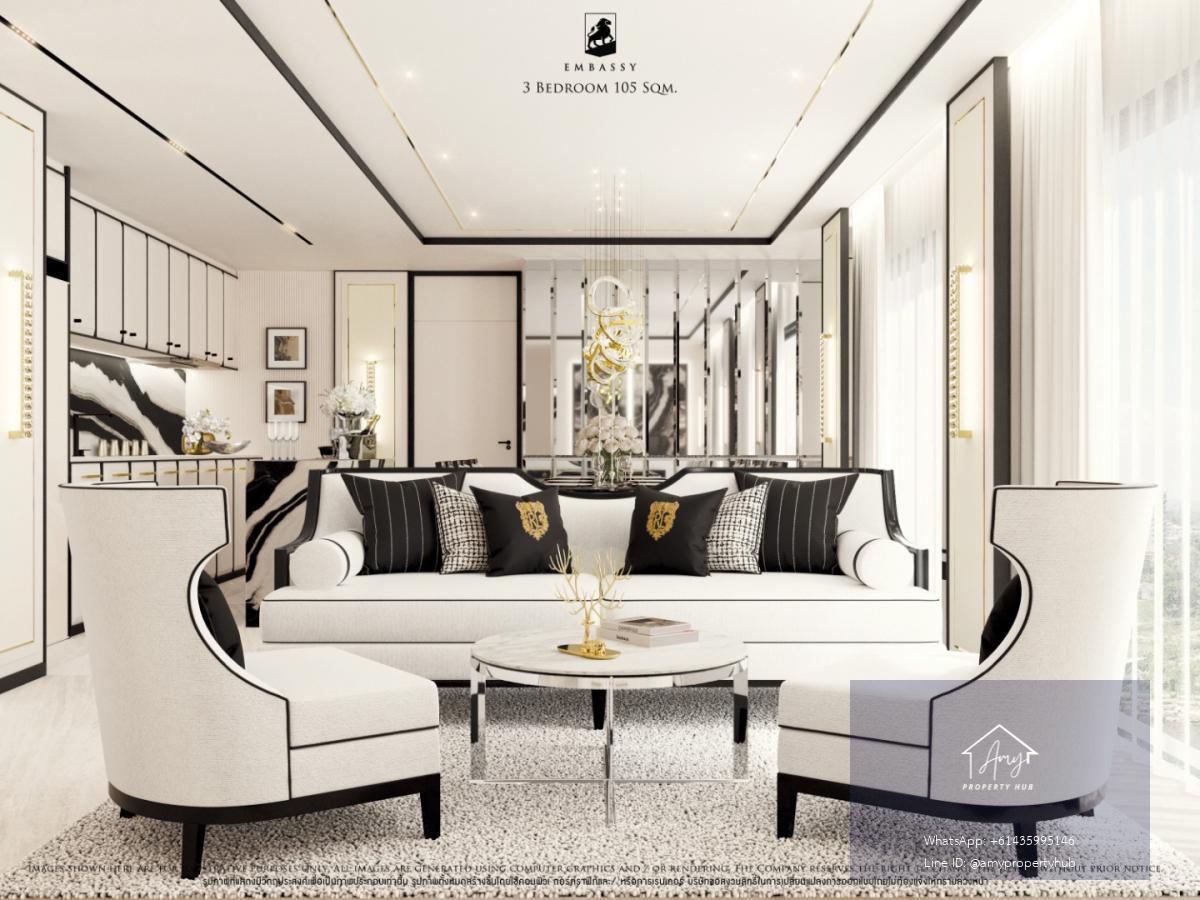 Furnishings: Delivered fully furnished in a luxurious \"Embassy-style\" style, emphasizing a black-and-white aesthetic.