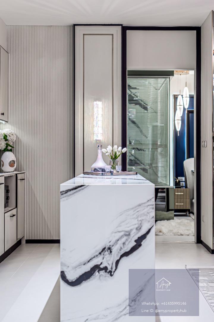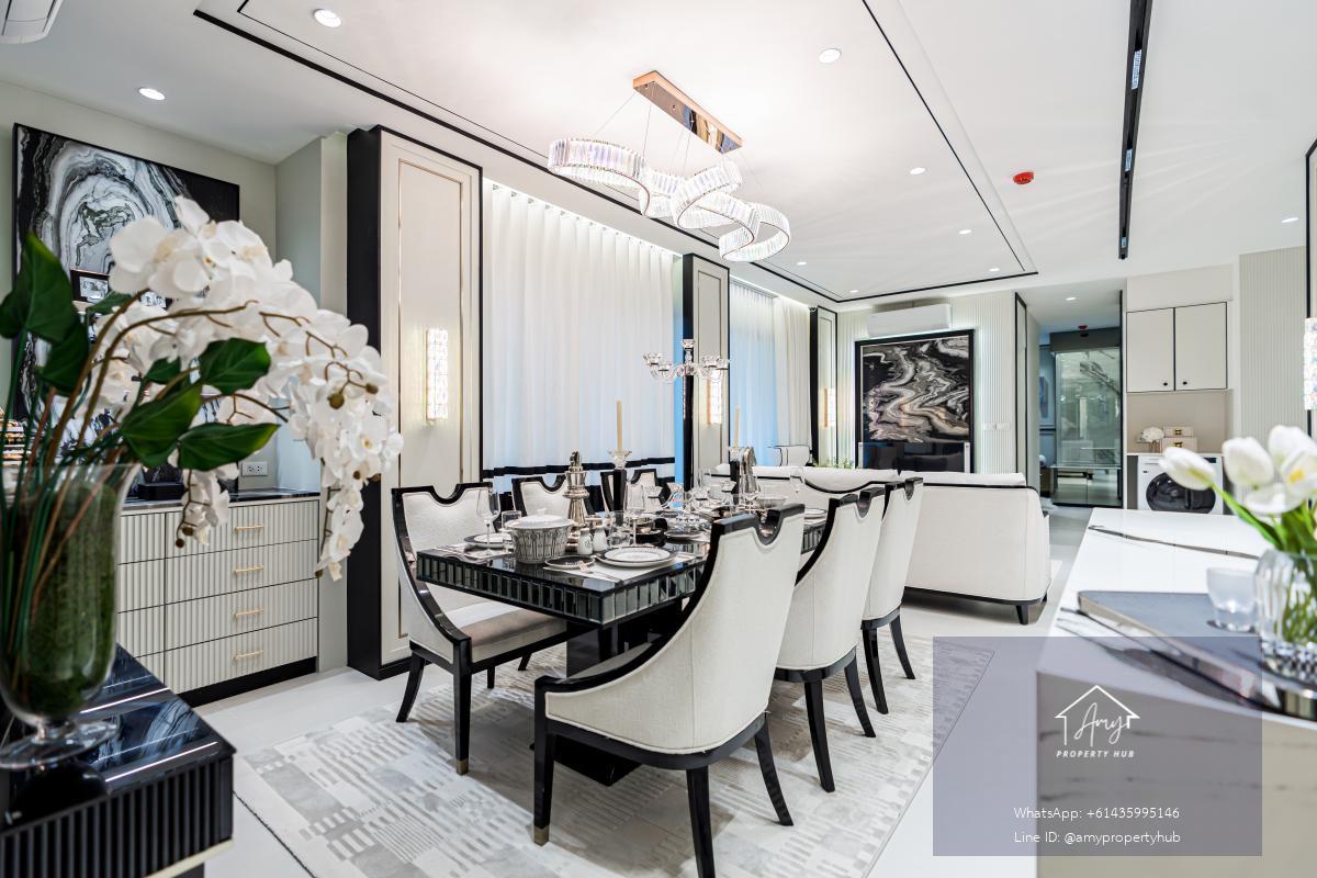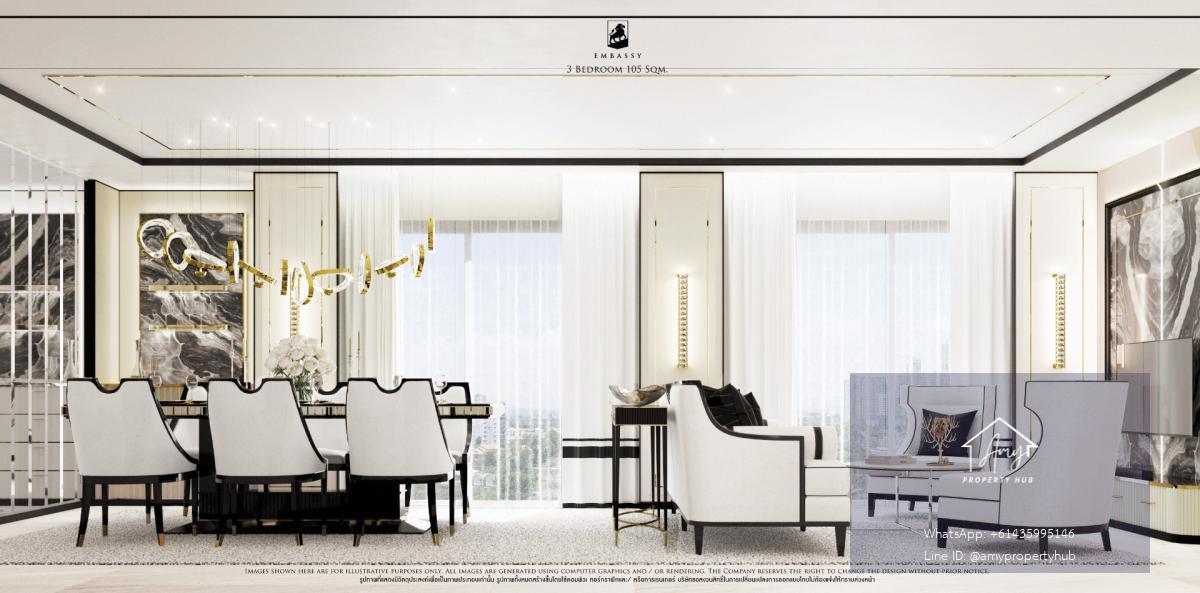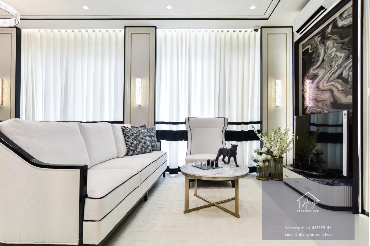 Furnishings: Delivered fully furnished in a luxurious \"Embassy-style\" style, emphasizing a black-and-white aesthetic.