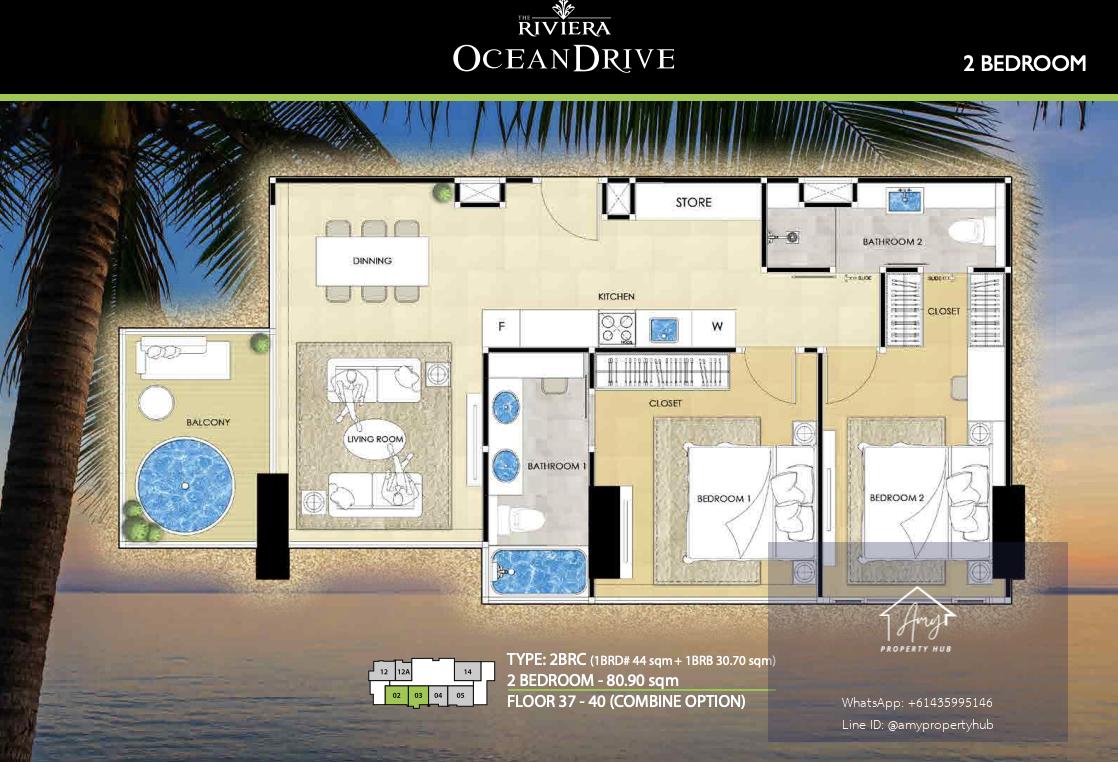 π Highlights of 2-Bedroom Units (The Riviera Jomtien)