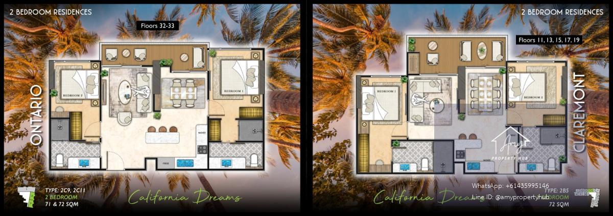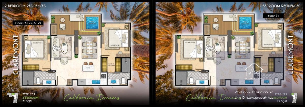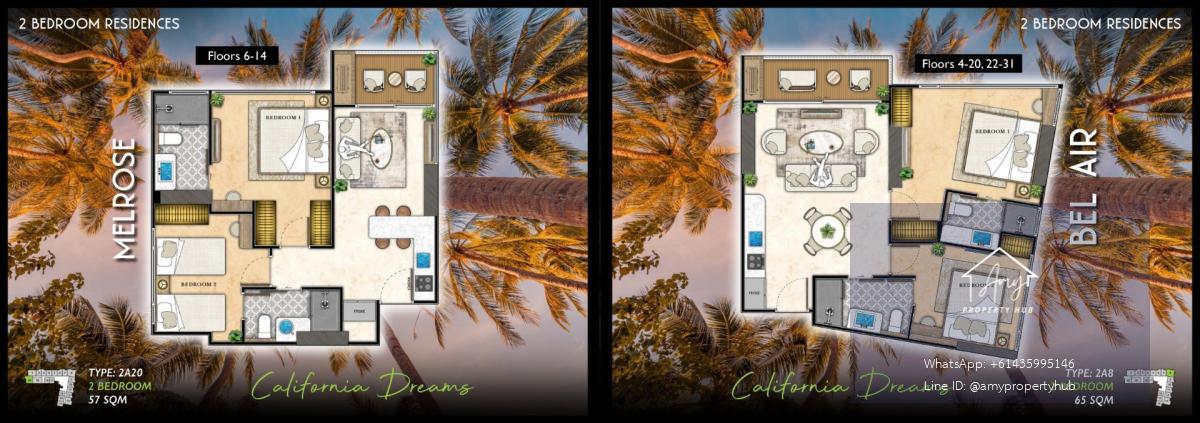 📌 2-Bedroom Units | Size: 50–73 sq.m. (The Riviera Santa Monica Jomtien)