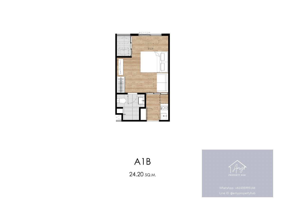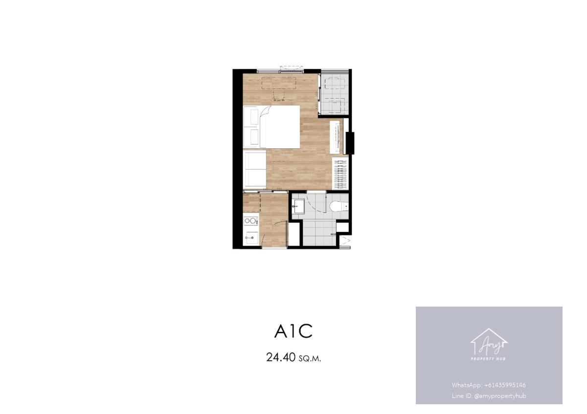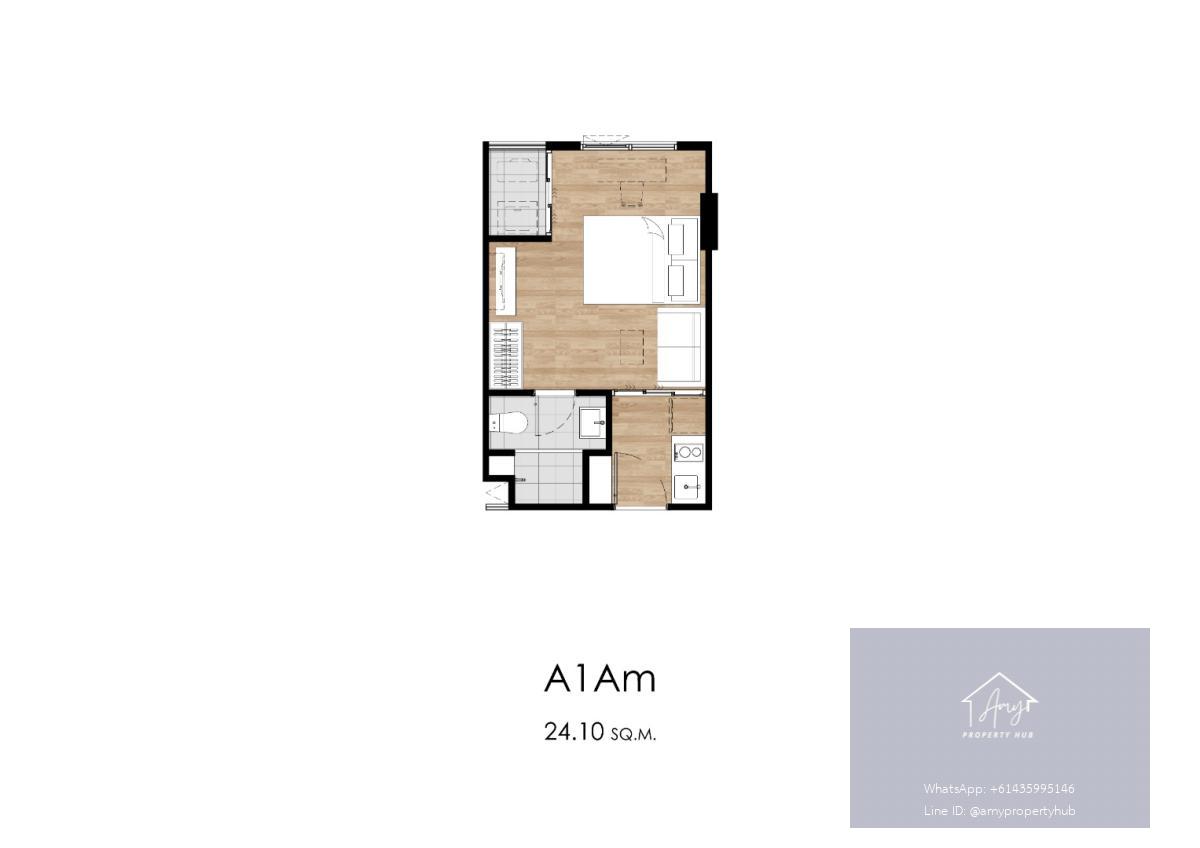 Usable Area: 24.10 – 24.80 sq.m. (The smallest 1-bedroom unit in the project)