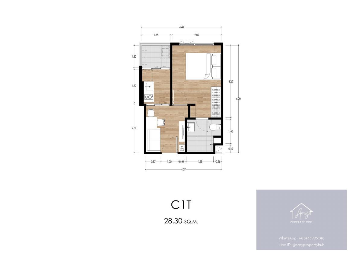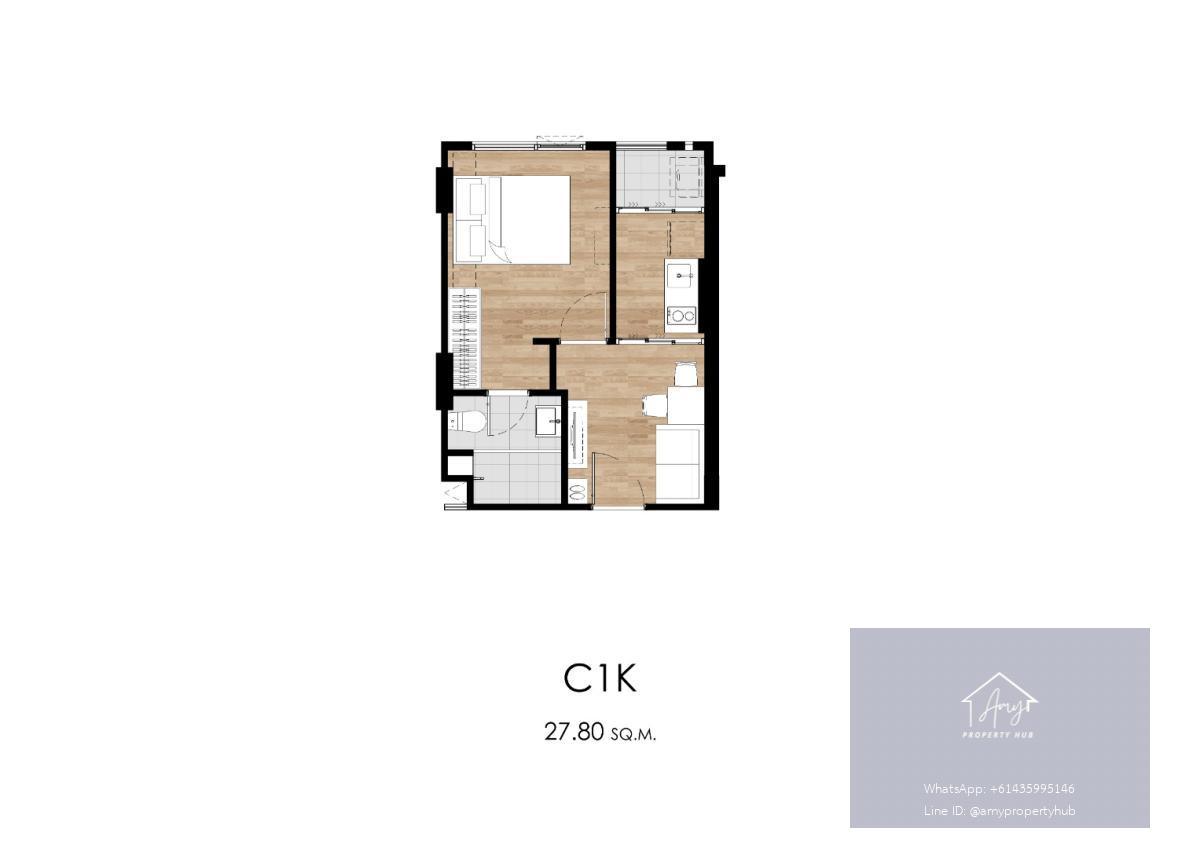 The 1 Bedroom Extra units in the Atmoz Oasis On Nut project are the largest 1-bedroom units with 1 bathroom. They offer additional space for essential functions and storage, making them ideal for those seeking maximum living convenience.