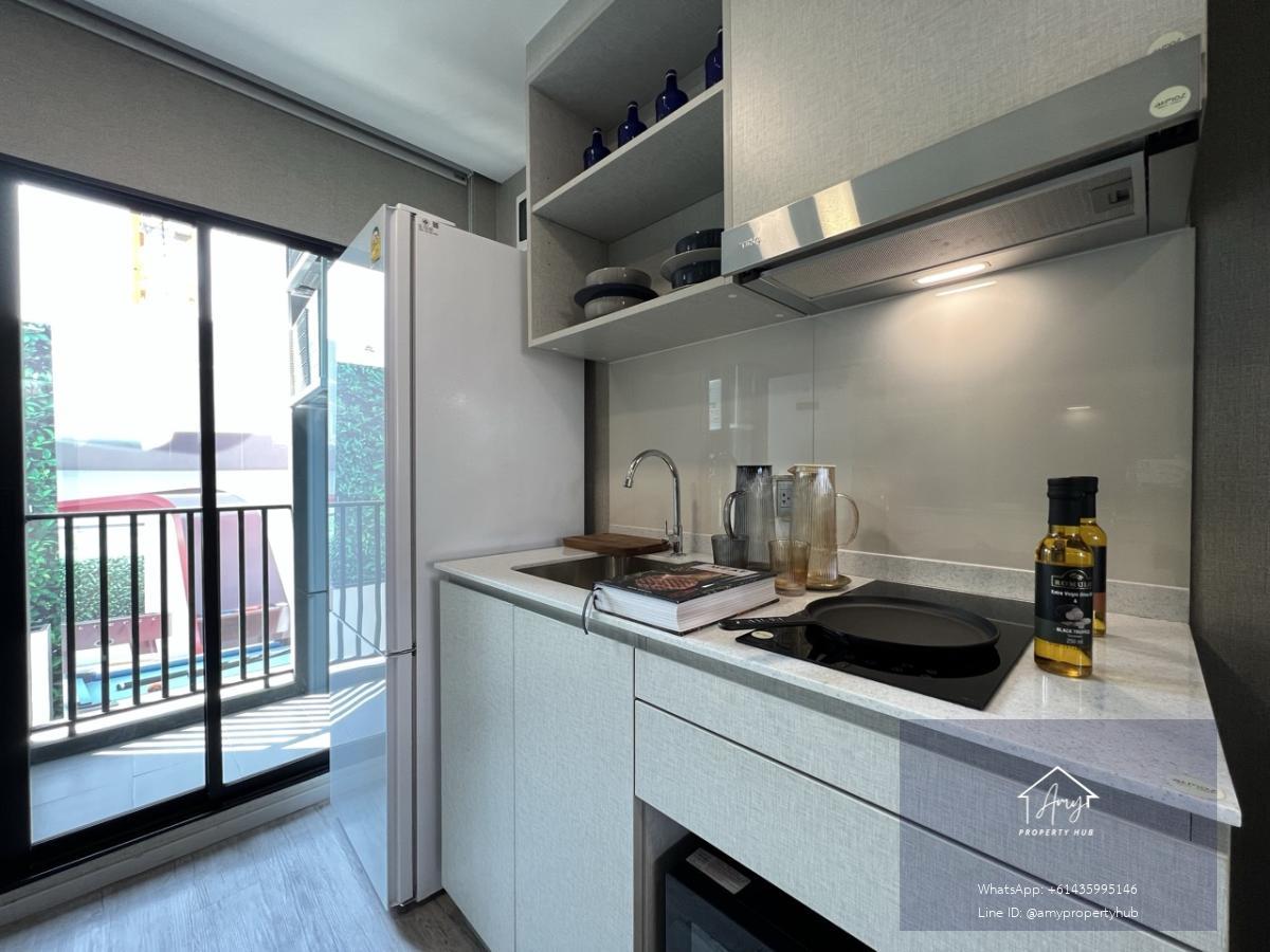 Common View: Inward-facing units also enjoy views of the 50-meter Lagoon Pool and a large oasis garden, creating an airy and spacious feel. Location and Access: Located on On Nut Road, near the MRT Yellow Line, Srinakarin Station, making it convenient for both living and traveling in the On Nut-Srinakarin area.