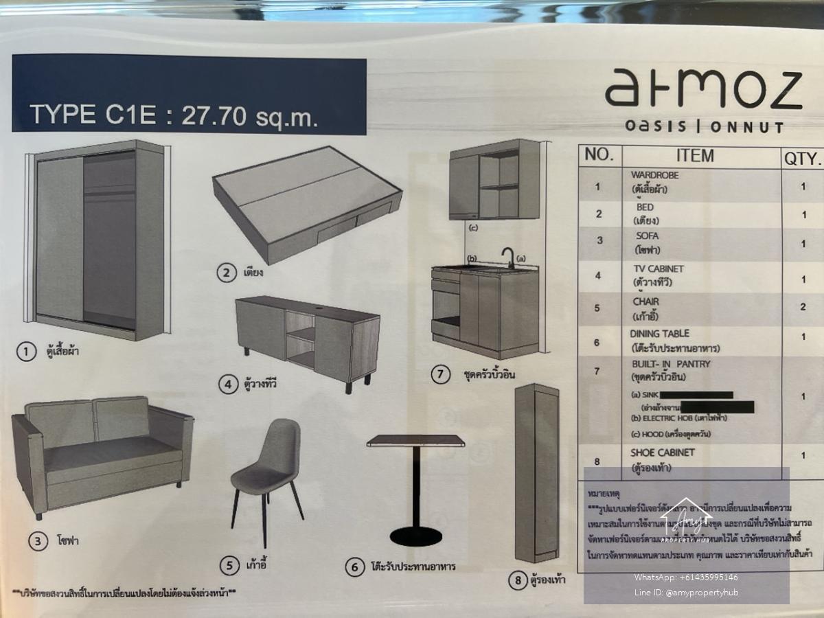 📌 1 Bedroom Extra Units | 26.80 – 28.50 sq.m. (Atmoz Oasis On Nut)