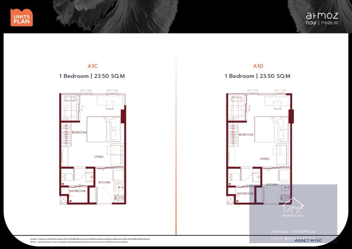 📌 1 Bedroom (23.30 - 25.00 sq.m.) | Atmoz Flow Minburi