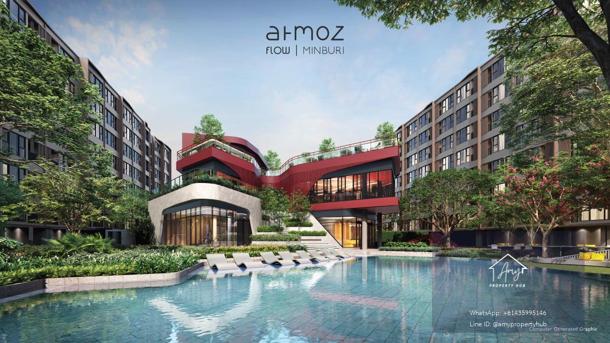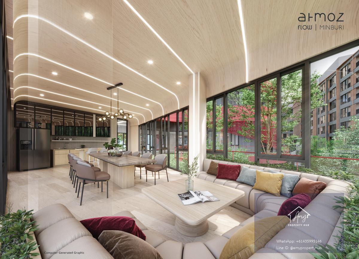 Flow Minburi: Developed under the concept of \\\"Living with Happiness\\\" (Flow), the project emphasizes the design of large, continuously connected common areas to support a variety of activities and lifestyles.