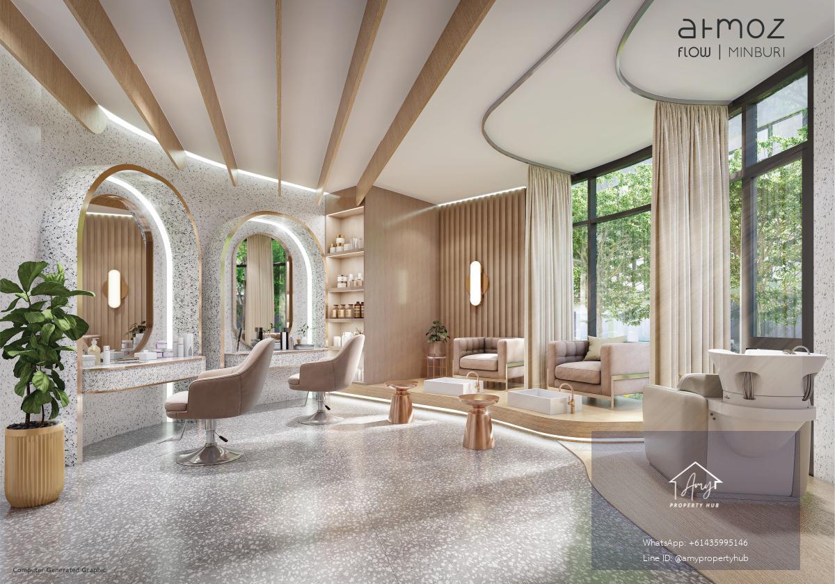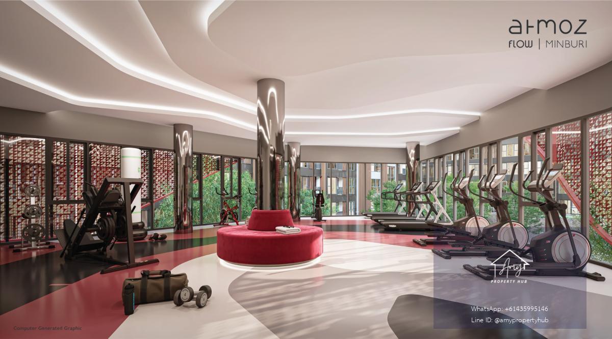 Flow Minburi: Developed under the concept of \"Flow,\" the project emphasizes the design of large, continuously connected common areas to support a variety of activities and lifestyles.