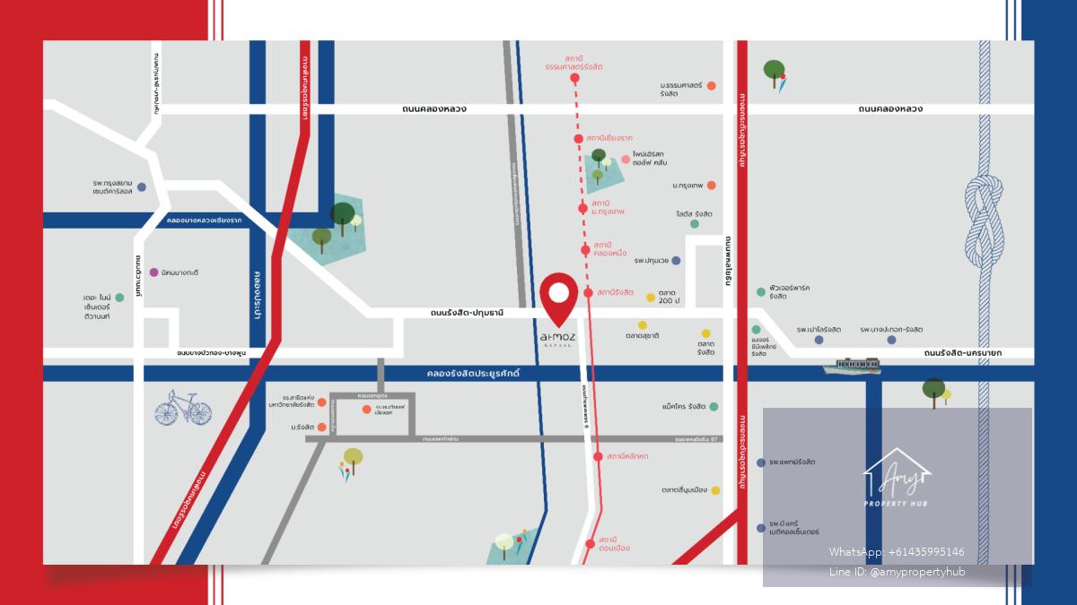BTS: Approximately 500-700 meters from the Rangsit Station on the Red Line (conveniently connected to the city center).