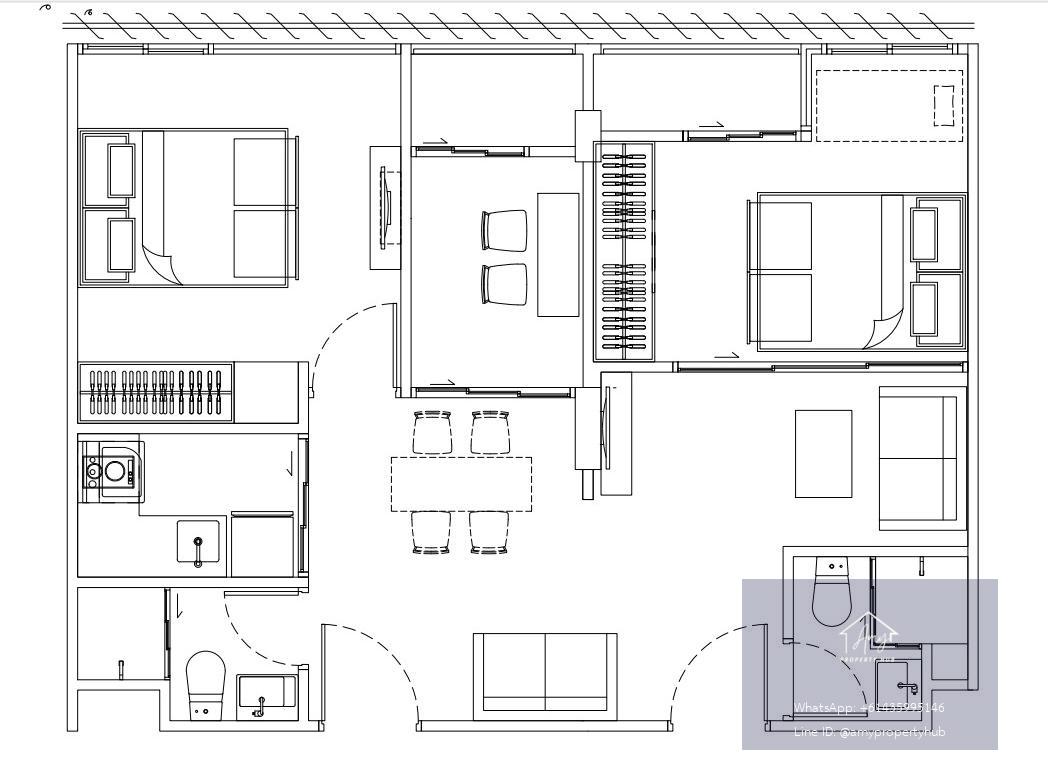 The 2-bedroom units in the Atmoz Ratchada-Huaikwang project are the largest units in the project. Offering complete living space for small families or those who prefer a clearly separated study and bedroom.