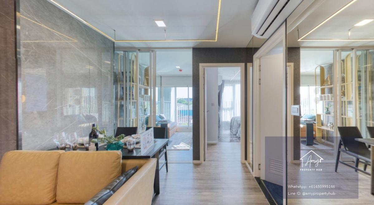 Prime location in Sriracha: Opposite Kasetsart University, Sriracha Campus, making it ideal for investment, rental, and personal living. Resort-Style Common Area: Enjoy full access to the three-story common area, including the swimming pool, fitness center, and Think Space.