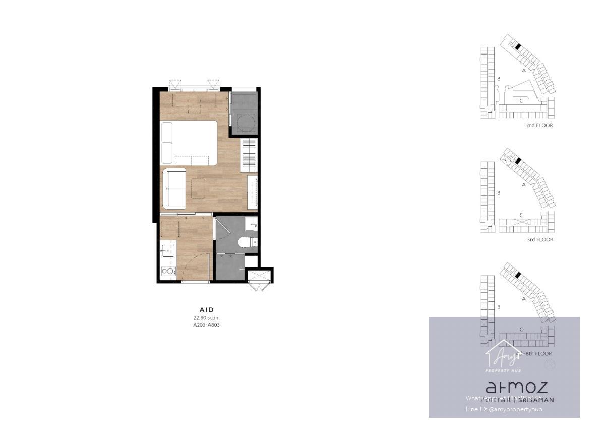 The starting 1-bedroom units in the Atmoz Portrait Srisaman project are value-for-money and ready-to-move-in units located opposite Robinson Srisaman.