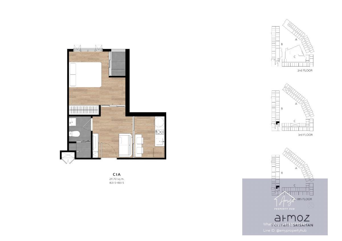 The 1 Bedroom Extra unit in the Atmoz Portrait Srisaman project (Atmoz Portrait Srisaman) is the largest unit with 1 bedroom and 1 bathroom. Offering the most spacious and comfortable living space for those seeking the ultimate in convenience in the Sri Saman area.