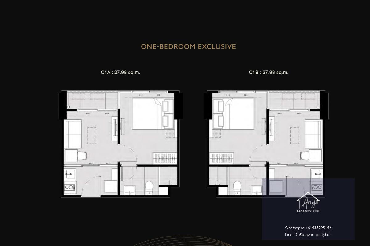 The 1 Bedroom Exclusive (Type C1A/C1B) units in the Modiz Collection Bangpho project are larger than the entry-level units (Studio/1 Bedroom A1A), providing more usable space. Approximately 28 square meters in size.