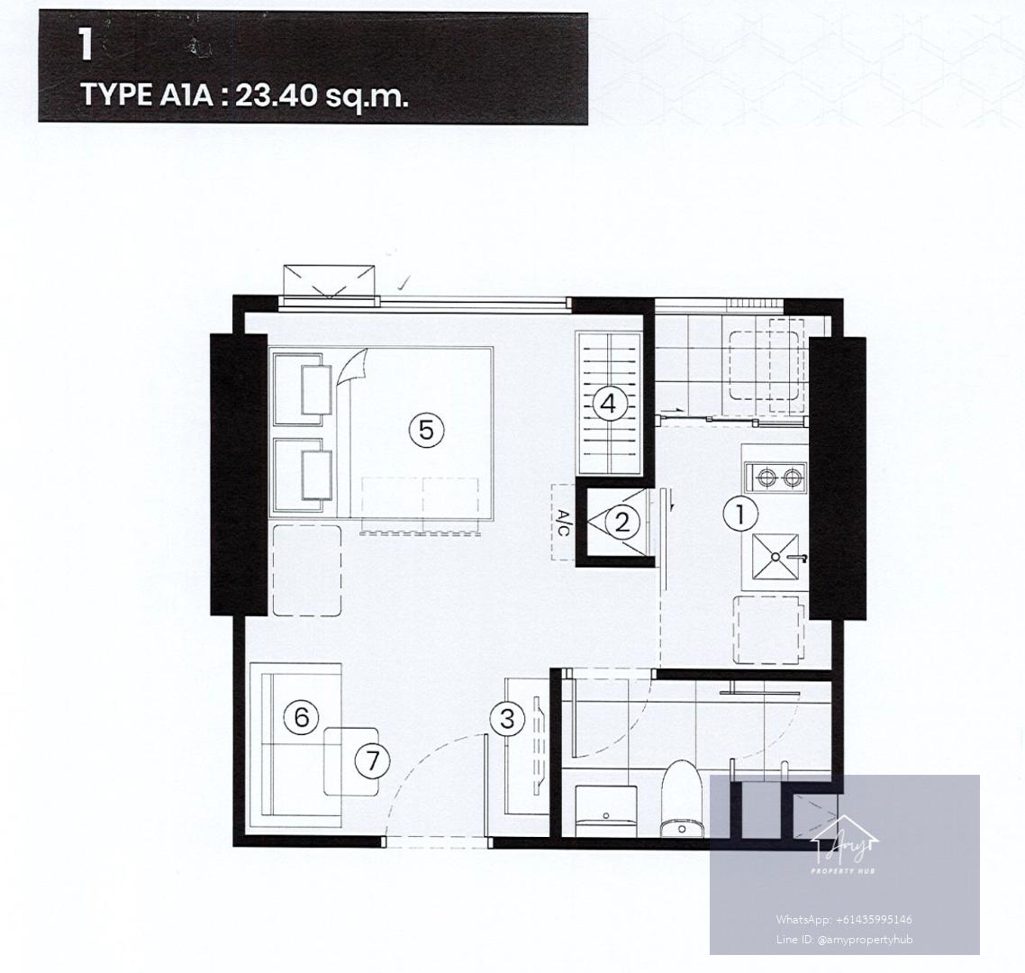 The 23.38 sq.m. (Type A2A) and 23.40 sq.m. (Type A1A) units are classified as 1 Bedroom (Simplex), the project\'s standard unit size.
